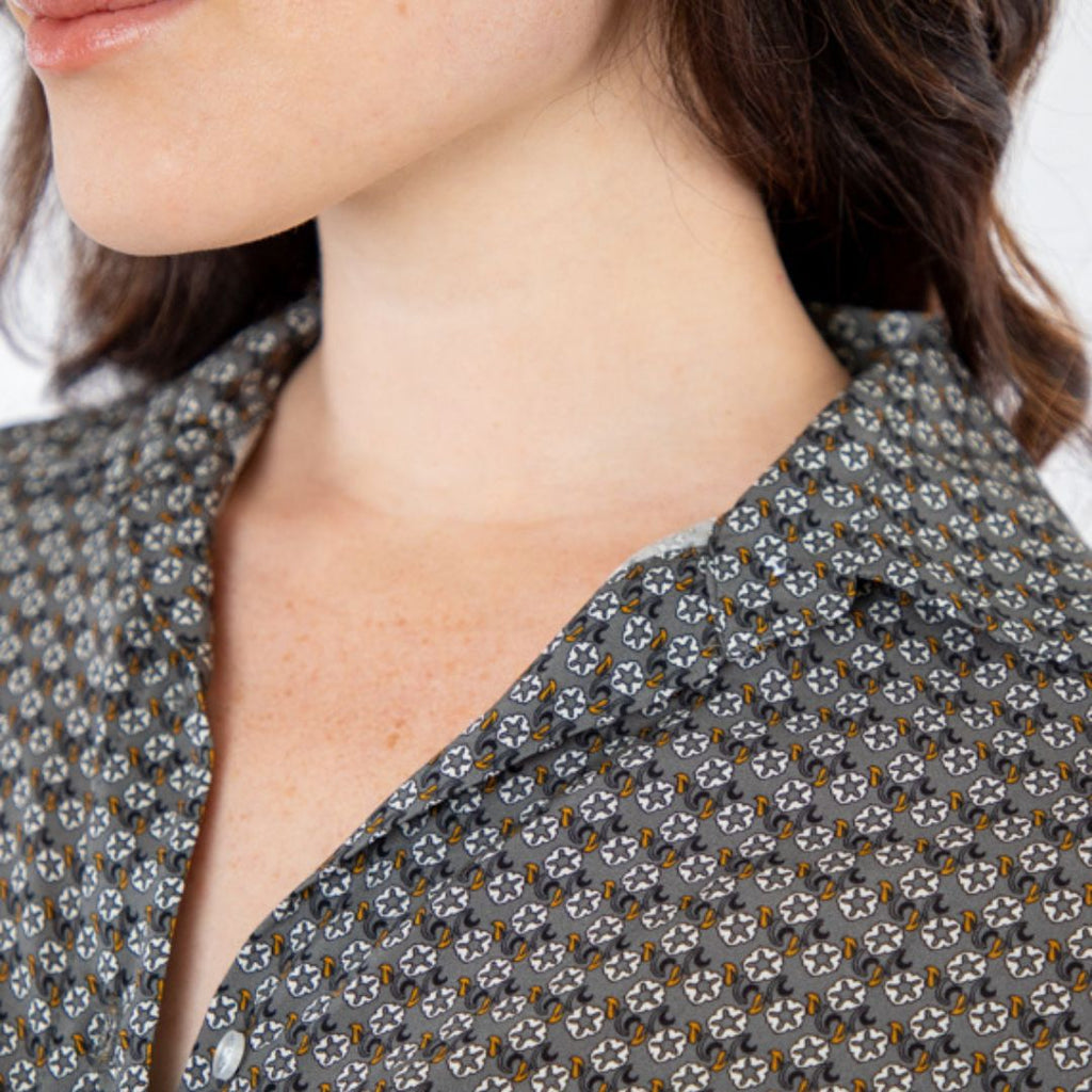 A flattering and versatile short-sleeve style in ultra soft cotton. With a hidden button placket, French Seams and tonal buttons, this style is handcrafted in Los Angeles.